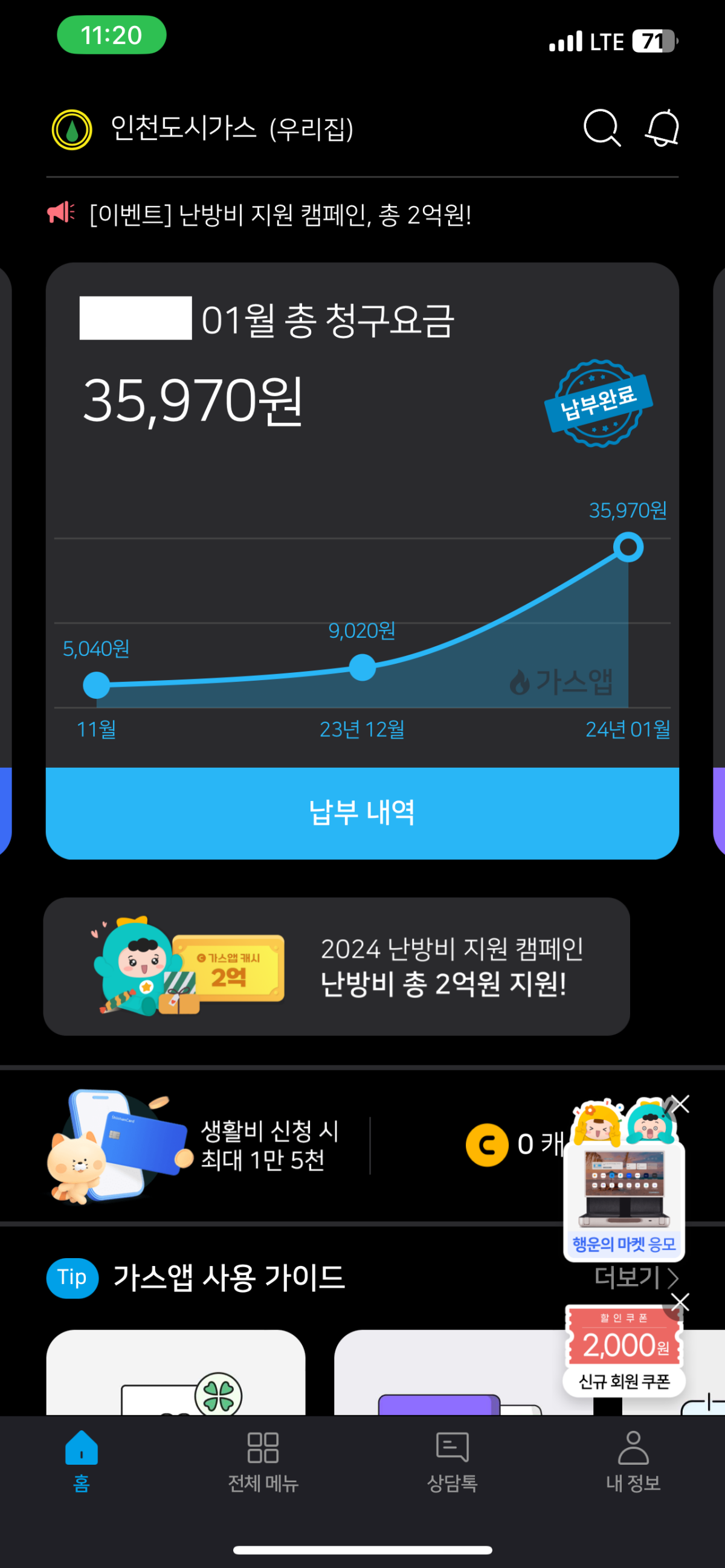 그리고 매달 다양한 혜택과 실시간 요금조회, 자동이체 요금납부, 이사 예약, 가스점검 신청 등을 편리하게 신청할 수 있습니다.