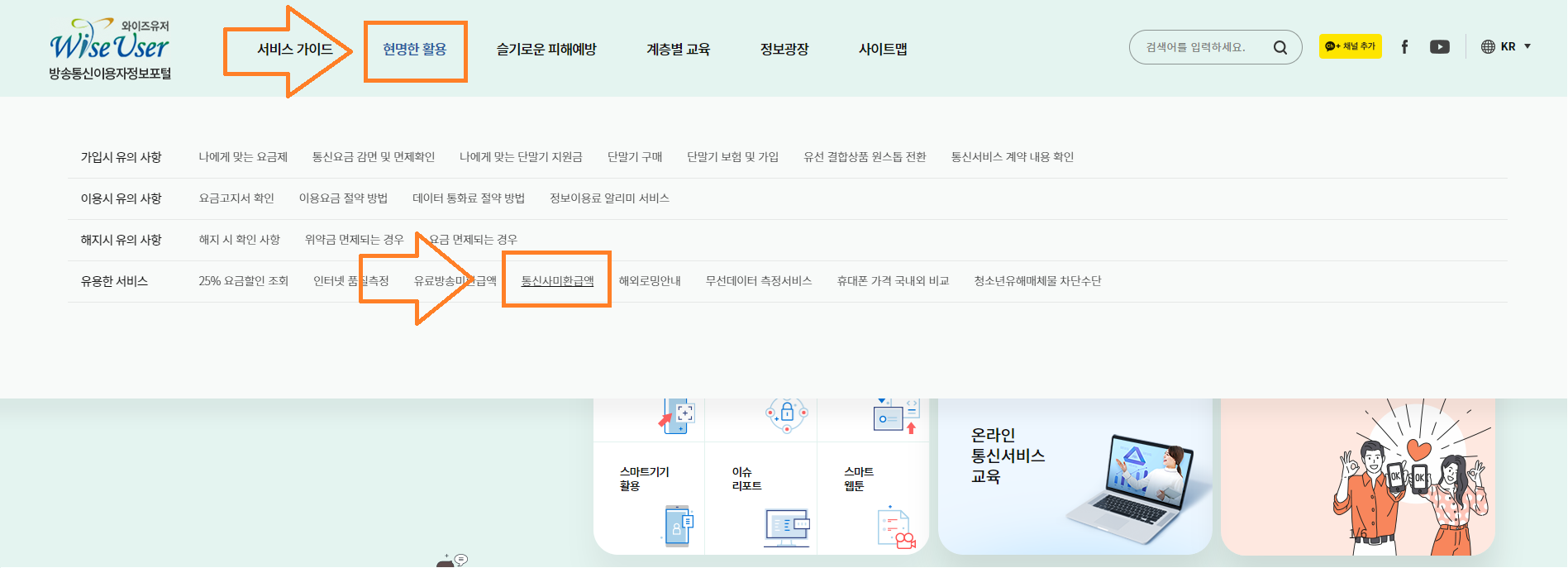 1.3 상단 메뉴바 "현명한 활용" 탭 클릭
