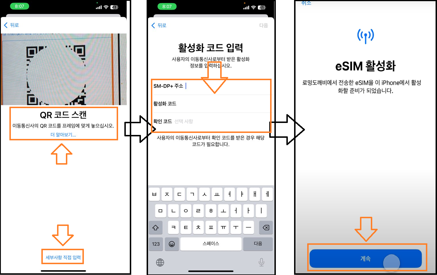 다음은 로밍 도깨비 아이폰(iOS)에서 eSIM을 등록하는 방법을 설명합니다.
