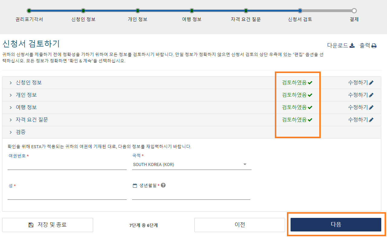 오타나 실수로 인해 승인거부가되면 복잡하니 꼭 꼼꼼하게 확인하시고 '다음'으로 넘어갑니다.