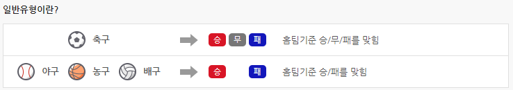 - 일반 게임유형 : 홈팀 승/무/패 예상결과를 맞히는 게임