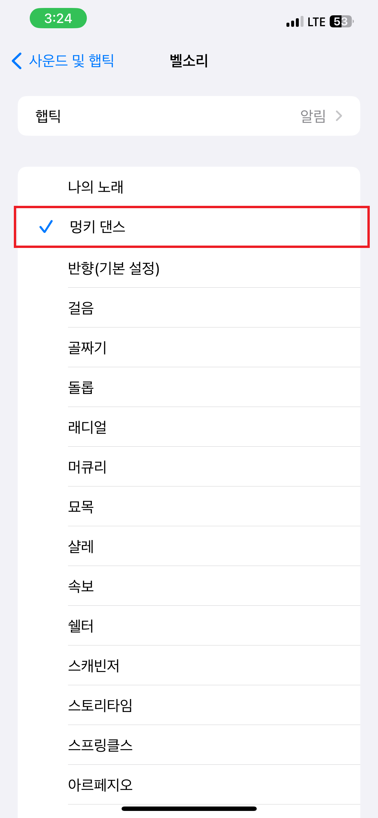 1.12 이렇게 하면 최종 벨소리로 사용 가능한 음원이 등록되고, 설정 > 벨소리를 들어가면 내가 선택한 음원이 벨소리에 등록되어 있는 것을 확인 할 수 있습니다.