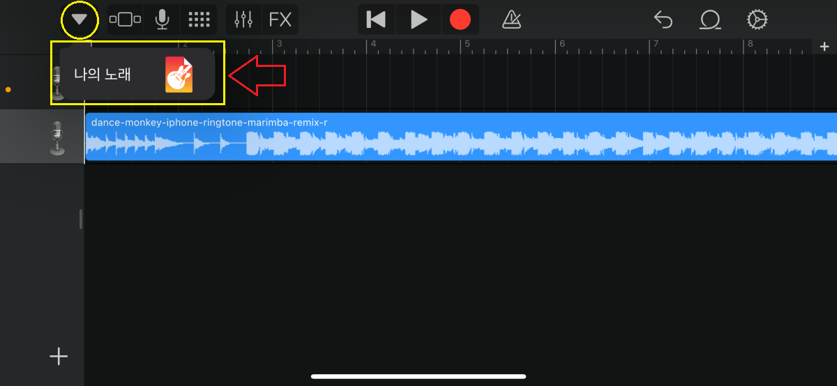 그러면 음원 이미지가 뜨고, 왼쪽 상단의 세모 모양의 아이콘을 눌러 '나의 노래'로 이동합니다.