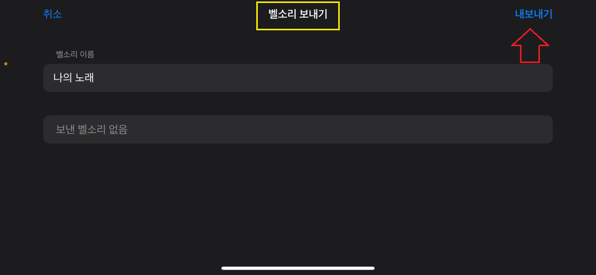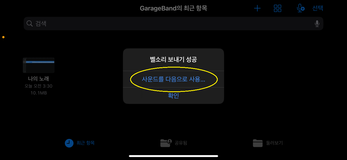 1.11 나의 노래 파일을 길게 눌러 파일설정에서 '공유'를 선택하고, '벨소리' 선택 후 벨소리 내보내기에서 '내보내기'를 눌러줍니다.