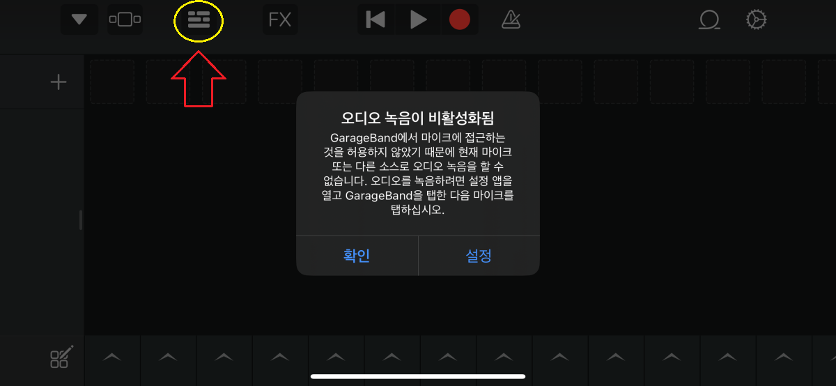 앱을 실행하면 초기에 '오디오 녹음이 비활성화됨' 이라고 나오는데 '설정'으로 들어가서 '활성화'로 변경하고 왼쪽 상단 벽돌 모양의 아이콘을 클릭합니다.