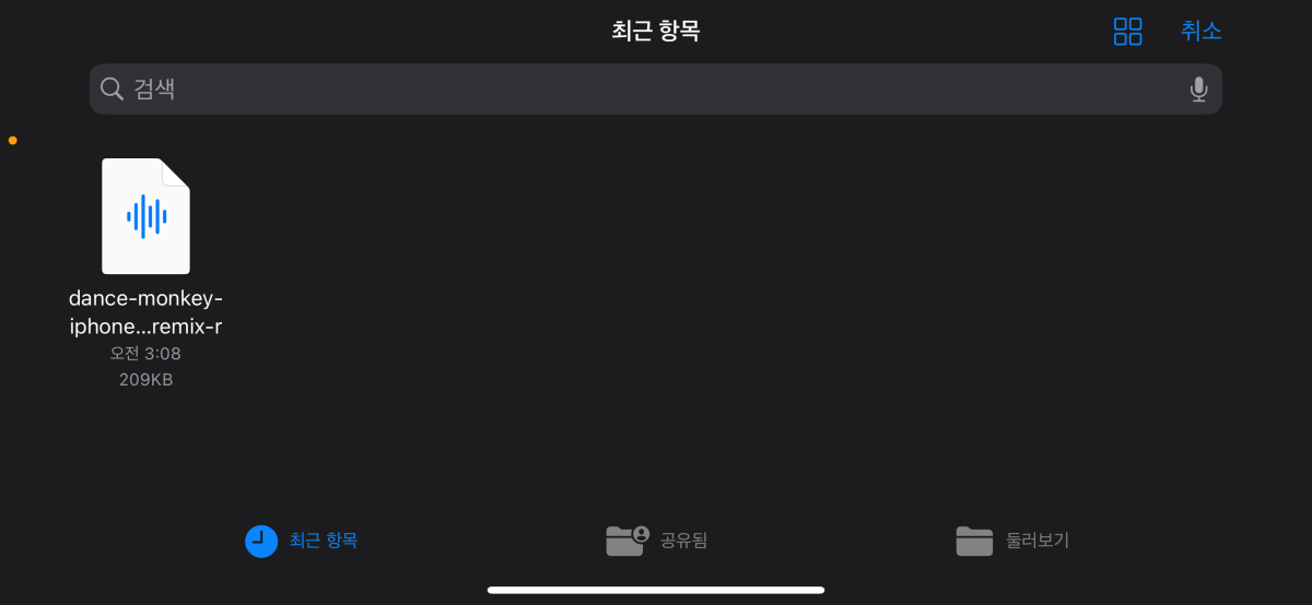 1.10 파일 탐색에서 최근항목이 나오고 방금 전에 받은 음원 파일이 나타나며 파일을 눌러줍니다.