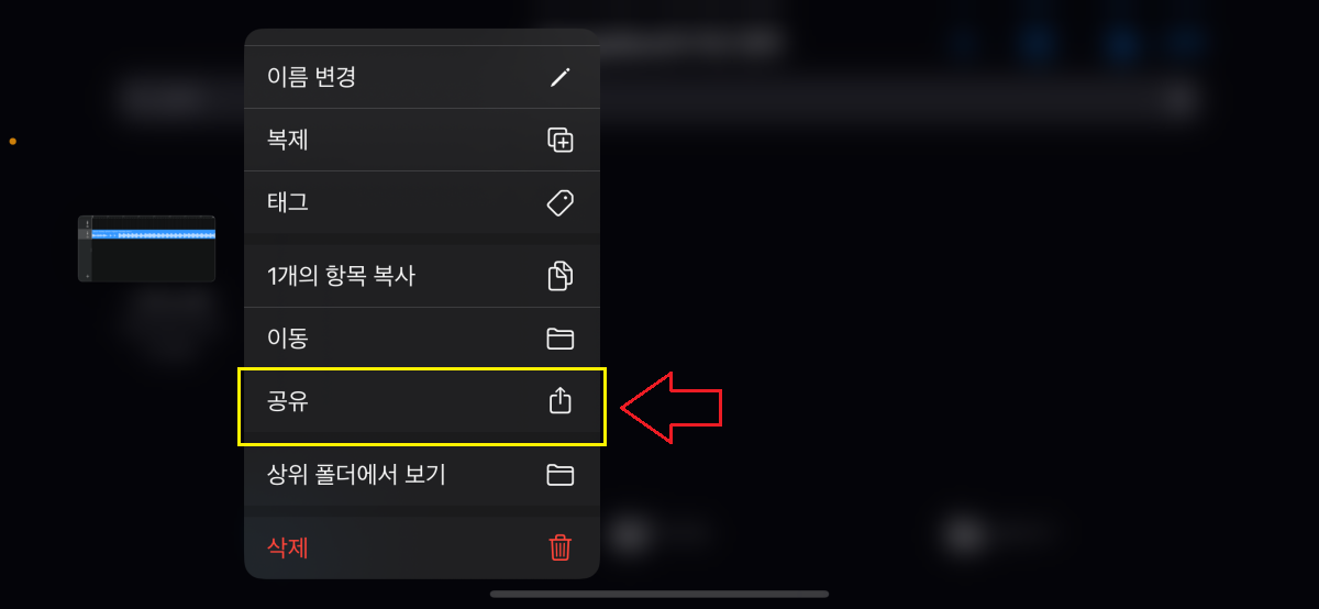 1.9 그리고 오른쪽 상단 '동그라미 모양의 아이콘'을 클릭하면 파일 검색 창이 뜨고 여기서 '파일 앱에서 항목 탐색'을 눌러줍니다.