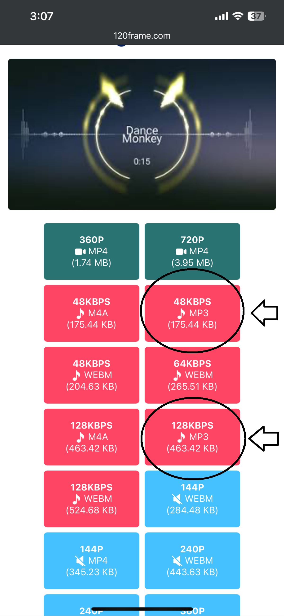 1.6 다운로드 버튼을 누른 후 스크롤을 내리면 다운로드 파일형식을 선택할 수 있는데 '48KBPS M4A', '128KBPS M4A'