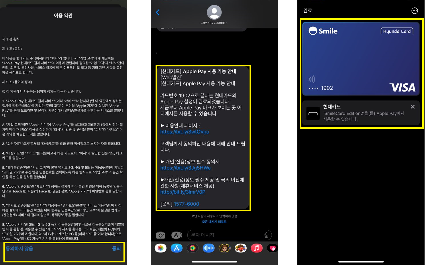 13) 현대카드에서 'Apple Pay 사용 가능 안내'라는 안내 문자를 받게 됩니다.