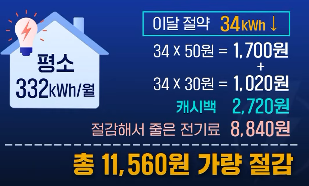 만약 올해 이사를 한 집이 이고 전에 살던 사람이 전기를 좀 헤프게 쓰는 사람들이었다면 나에게 아주 유리해집니다. 주소지를 기준으로 할인이 들어가기 때문입니다. 만약 내가 올 초에 이사를 왔다, 그러면 집주인들이 썼던 전력량에 맞춰서 지금 내 캐시백이 계산됩니다. 그리고 에너지캐시백에 가입해 놓으면 지금 내가 얼마나 아껴 쓰고 있는지, 또 과거 우리 집의 사용량과 지금 현재 사용량을 비교하면서 볼 수 있습니다.